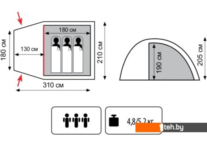 | Водостойкость тента | 2 000 мм вод. ст. |