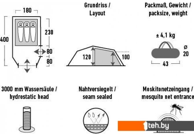 | Водостойкость тента | 3 000 мм вод. ст. |