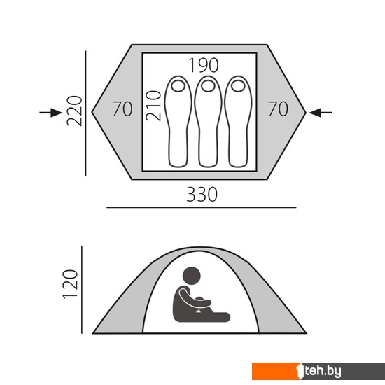 Информация | - Установка за 30 секунд - Два входа создают дополнительное удобство при эксплуатации и значительно улучшают вентиляцию - Вход спального отделения продублирован москитной сеткой - Хорошая вентиляция обеспечивается двумя вентиляционными окошками |