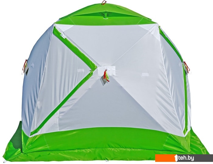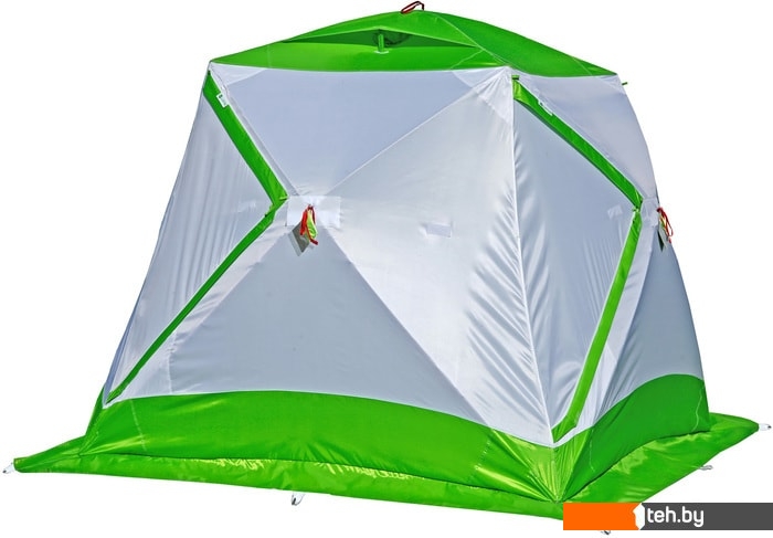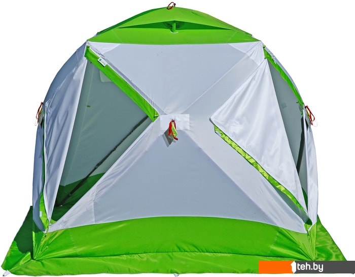 Информация | ЛОТОС Куб 3 Компакт – полуавтоматическая палатка куб для зимней рыбалки, не имеющая аналогов в категории палаток куб по компактности сложения.ЛОТОС Куб 3 Компакт является новинкой 2018 года, которая приходит на смену палатки 2017 года выпуска ЛОТОС Куб М2.Палатка оснащена каркасом высокой жесткости с запатентованной системой компактного сложения, в которой применен принципиально-новый гибкий фиксируемый узел.Дизайн палатки выполнен в бело-салатовом цветовом исполнении с использованием светопроводящих тканей.Все швы в конструкции тента выполнены двойным швом на 2-х игольной машине, при этом все несущие швы выполнены «швом в замок», в четыре сложения ткани, что обеспечивает им максимальную прочность. |