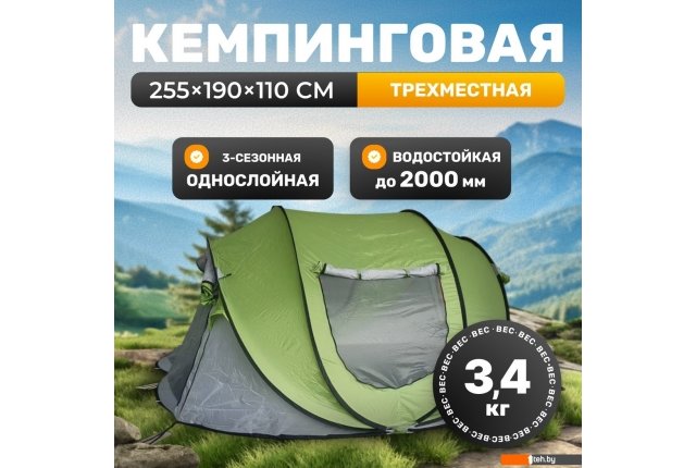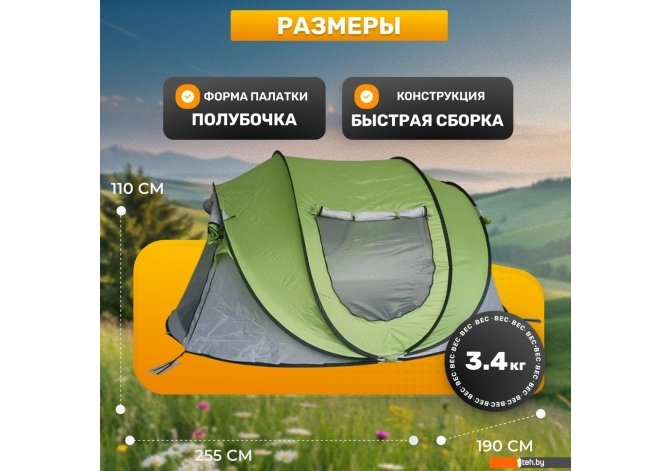 | Информация | - Туристическая палатка в форме полубочки идеально подходит для комфортного кемпинга в любых условиях. Эта трехсезонная модель вмещает до 3 человек и предлагает одно просторное помещение с двумя входами для удобства. - Конструкция палатки включает два окна и вентиляционные отверстия, что обеспечивает отличную циркуляцию воздуха. Проклеенные швы и водостойкость тента и дна на уровне 2000 мм гарантируют защиту от дождя. Противомоскитная сетка добавляет комфорт, а штормовые оттяжки обеспечивают устойчивость в непогоду. - Дно выполнено из прочного полиэтилена (120 г/м?), а дуги из стекловолокна диаметром 6 мм делают палатку легкой и прочной одновременно. Компактные размеры в сложенном виде (96?96?4 см) и вес всего 3.4 кг значительно упрощают транспортировку. В комплекте также предусмотрена сумка для хранения и ввертыши для надежной установки. - Палатка отлично маскируется на природе благодаря своим естественным цветам. Размеры 255?190?110 см обеспечивают достаточно пространства для отдыха. Эта кемпинговая палатка станет отличным выбором для путешествий, рыбалки и походов, сочетая практичность и надежность. |