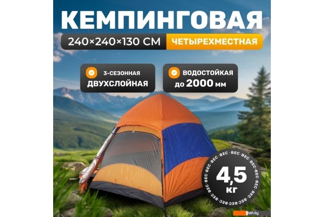 | Информация | - Туристическая палатка для кемпинга в форме полусферы идеально подходит для 4 человек. Эта модель с одной комнатой предназначена для использования в три сезона: весной, летом и осенью. Два входа делают процесс входа и выхода более удобным, а два слоя ткани обеспечивают комфорт в различных погодных условиях. - Палатка выполнена из прочного полиэстера (190T), который защищает от дождя с водостойкостью 2000 мм. Внутренний слой и дно из оксфорда (210D) добавляют прочности и предотвращают протекание. Все швы проклеены для дополнительной герметизации, что делает эту палатку надежным выбором для кемпинга. - Каркас из стекловолокна с дугами диаметром 8.5 мм обеспечивает устойчивость к ветру. Вентиляционные окна помогают избежать конденсата, что особенно важно во время ночевки. Габариты палатки 240?240?130 см позволяют комфортно разместиться внутри, а вес всего 4.5 кг делает ее удобной для транспортировки. - Эта большая кемпинговая палатка сочетает в себе функциональность и удобство, что делает ее отличным выбором для семейного отдыха или выездов с друзьями. |