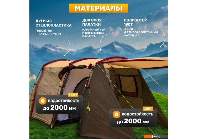 | Водостойкость тента | 2 000 мм вод. ст. |