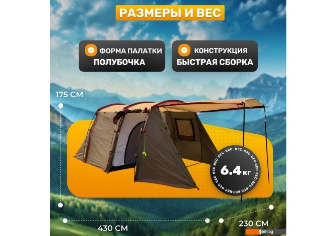 | Информация | - Туристическая палатка в форме полубочки идеально подходит для кемпинга и трехсезонного использования, вмещая до 5 человек. Просторные размеры (430?230?175 см) обеспечивают комфортное размещение для группы, а три входа делают передвижение внутри палатки легким и удобным. - Двухслойная конструкция с проклеенными швами надежно защищает от влаги: тент выдерживает давление водяного столба до 2000 мм, а дно — до 1500 мм. Используемые материалы — полиэстер 190T для тента и внутренней части, а также каркас из стекловолокна с дугами диаметром 11 мм — обеспечивают легкость (всего 6.4 кг) и устойчивость к ветру. - Эта большая кемпинговая палатка с одной комнатой станет отличным выбором для семейного выезда или отдыха с друзьями. Простота сборки и надежная герметизация делают ее практичным вариантом для длительных походов. - Не упустите возможность насладиться комфортом на природе! |