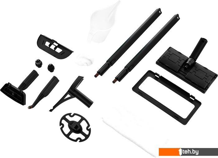 Дополнительные насадки и приспособления | - тряпка для отпаривания; - латунная щетка; - тряпка для пола; - насадка для отпаривания; - рамка для ковра; - мерный стакан; - круглая нейлоновая щетка; - держатель шнура; - держатель для одежды; - запасные уплотнительные кольца; - колпачок на паровое сопло. |