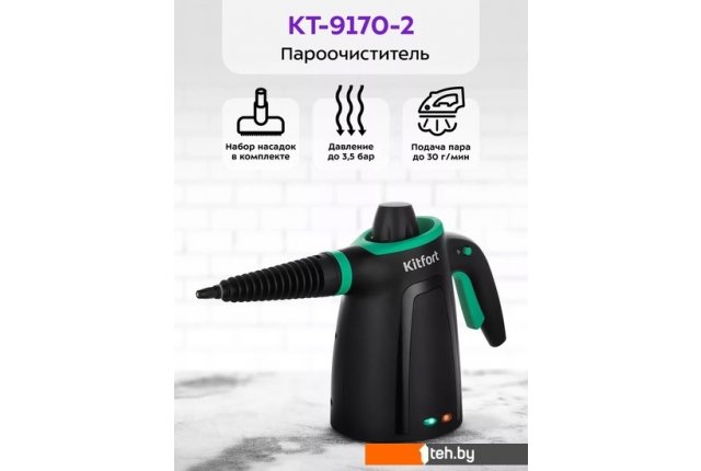 Если хотите купить пароочиститель Kitfort KT-9170-2 то следует уточнить все параметры и габариты модели перед покупкой. Представленые характеристики на сайте 1teh.by могут отличаться от действительных или указанных производителем. Описание, фото товара и технические характеристики представлены для справки.