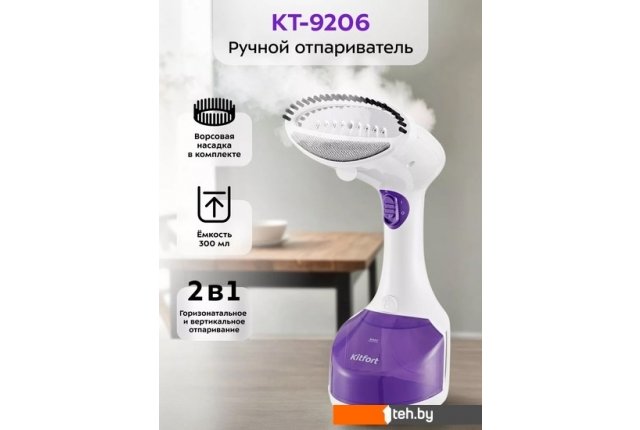 Информация | ? Ручной отпариватель КТ-9206 позволяет быстро погладить любые изделия из текстиля, осуществляет тщательный уход за одеждой, обивкой мебели, занавесками и даже игрушками - освежает их, дезинфицирует и избавляет от запаха! ? Устройство приведёт в порядок вещи быстро и практически в любом месте — без раскладывания гладильной доски. Одежда при этом может висеть на вешалке, сушилке для белья или верёвке. ? При подключении устройства к сети выполняется нагрев, при этом мигает индикатор. Когда отпариватель нагреется и будет готов к работе- индикатор гаснет. Пар подаётся при нажатии и удерживании кнопки «Пар». ? Чтобы зафиксировать кнопку «Пар» в нажатом состоянии, сдвиньте вниз фиксатор на кнопке подачи пара — устройство будет непрерывно подавать пар. Чтобы отключить непрерывную подачу пара -передвиньте фиксатор вверх и отпустите кнопку. ? Отпариватель имеет встроенную водяную помпу, что позволяет генерировать пар под высоким давлением. Это открывает возможность осуществлять отпаривание не только вертикально, но и горизонтально. Водяная помпа обеспечивает устойчивую подачу пара. ? Резервуар для воды у отпаривателя полностью съёмный, поэтому вам не составит труда наполнить его водой до необходимого уровня. ? Резервуар для воды ёмкостью 300 мл съёмный и с широким отверстием, поэтому он легко наполняется водой и устанавливается в корпус прибора. Отверстие защищено прорезиненной крышкой, чтобы вода не вытекла при работе устройства. ? В комплекте имеется ворсовая щётка, которая облегчает очищение от шерсти и волос с текстильных изделий. Пар снимает электрический заряд с загрязнений, делая их легко удаляемыми с помощью ворсовой щётки. ? Отпариватель КТ-9206 - очень компактное и функциональное устройство. Его удобно взять с собой в путешествия, командировки и отпуск! Длина шнура 1,3 м позволяет использовать устройство на большом расстоянии от розетки. |