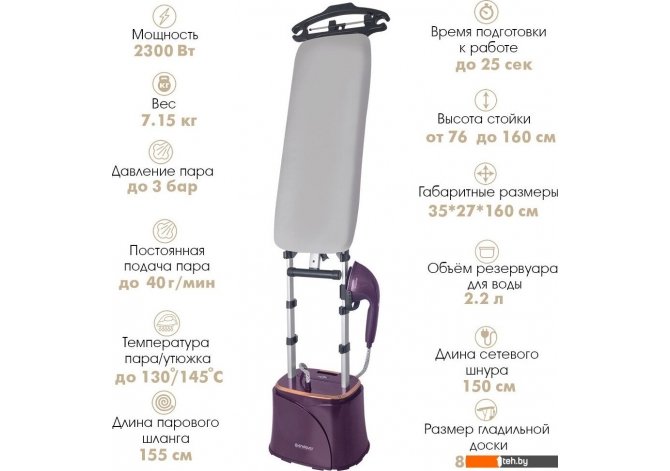 | Информация | -Отпариватель Endever Odyssey Q-17 - это современное устройство для эффективного и деликатного ухода за одеждой и домашним текстилем. Благодаря высокой мощности 2300 Вт и производительности пара до 40 г/мин, прибор быстро и качественно справляется с разглаживанием различных типов тканей, включая шерсть, шелк, лен и смешанные материалы. -Модель оснащена тройной системой регулировки мощности, что позволяет подобрать оптимальный режим для разных задач. Телескопическая стойка регулируется по высоте от 76 до 160 см, а полноценная гладильная доска размером 80?29 см обеспечивает удобство при работе с крупными вещами. Керамическая подошва утюжка облегчает процесс отпаривания и сухой глажки. -Безопасность и комфорт использования гарантируют термозащитная рукавица, защита от отсутствия воды и перегрева, а также индикаторы готовности к работе. Съемный резервуар для воды объемом 2.2 л позволяет легко контролировать уровень жидкости и доливать воду в процессе работы, обеспечивая до 70 минут непрерывного отпаривания. -Endever Odyssey Q-17 отличается стильным фиолетовым дизайном и может использоваться не только для одежды, но и для обработки постельных принадлежностей, мягкой мебели и ковровых покрытий, эффективно уничтожая пылевых клещей и неприятные запахи. Это надежный выбор для тех, кто ценит комфорт, чистоту и заботу о здоровье в доме. |