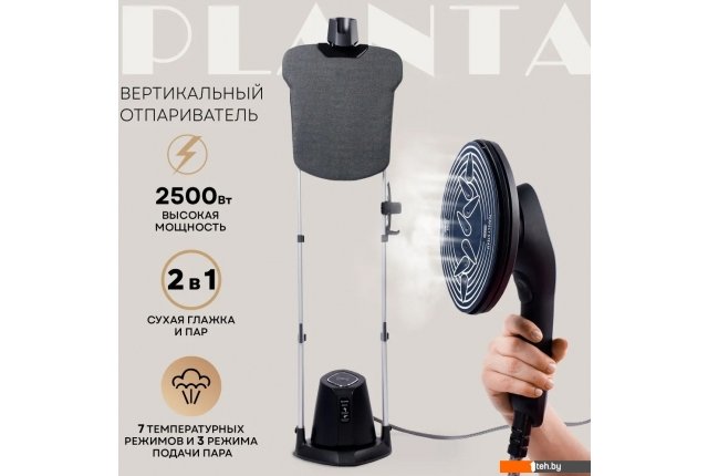 | Информация | - Вертикальный отпариватель PLANTA PLS-V200 - универсальное устройство для ухода за одеждой. - Мощный парогенератор позволяет использовать отпариватель для вертикального отпаривания, сухой глажки и глажки паром. - Гладящая поверхность с керамическим покрытием безопасна для всех видов тканей и долговечна в использовании. - Отпариватель подходит для всех видов тканей, включая объемные и структурные. - Можно использовать для ухода за текстильными изделиями и мягкой мебелью. - Мощность 2500 Вт обеспечивает высокую температуру пара для дезинфекции поверхностей. - Гладильная доска-трансформер с различными положениями для максимального комфорта при глажке. - 3 режима подачи пара и 7 температурных режимов для различных тканей и поверхностей. - Съемный и вместительный резервуар для воды 1,2 л для продолжительного использования. - Телескопические стойки гладильной доски регулируются по высоте и имеют крепление-держатель для утюжка. - Стильный и компактный корпус, который не займет много места в интерьере. |