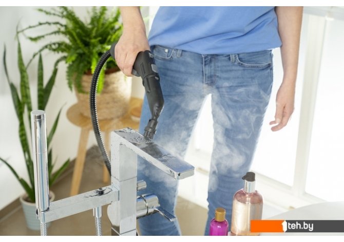 | Информация | ? Пароочиститель SC 3 Deluxe, подготавливаемый к работе лишь за 30 секунд, при чистке твердых поверхностей уничтожает до 99 , 99 % вирусов* и распространенных в быту бактерий . Отсек для принадлежностей в его корпусе позволяет удобно хранить насадки, кабель и шланг . Другими особенностями являются встроенный картридж для защиты от накипи , бачок для долива воды без перерывов в работе , светодиодный индикатор режимов и многочисленные аксессуары для удаления стойких загрязнений с кухонных плит , вытяжек , из швов керамической плитки и т. д. В комплект поставки входит также насадка для пола EasyFix с шарниром, облегчающим выполнение работ , и пластинчатой подошвой , гарантирующей превосходные результаты уборки . Кроме того, она может быть оснащена накладкой для освежения ковров , также включенной в комплект поставки . Микроволоконная салфетка для пола легко закрепляется на этой насадке при помощи липучки и быстро снимается без контакта с грязью . 2-ступенчатая регулировка подачи пара гарантирует адаптацию к виду очищаемой поверхности и степени ее загрязненности. ?? |