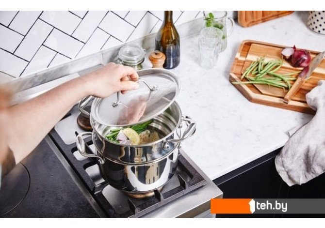 | Информация | Экономия места: 1 пароварка подходит для кастрюль серии Chef 3х размеров (диаметром 16, 18 или 20 см) |
