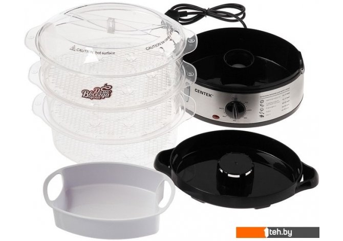 Фотографии, описание и технические характеристики модели пароварки CENTEK CT-1457 взяты из открытых источников, официального сайта производителя или представительства CENTEK в Республике Беларусь.