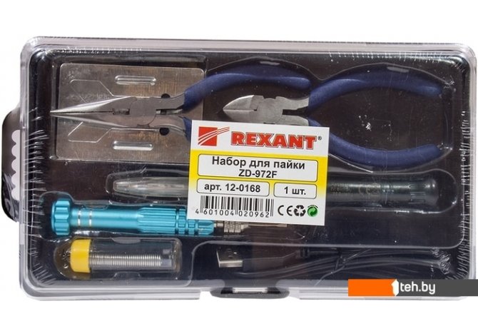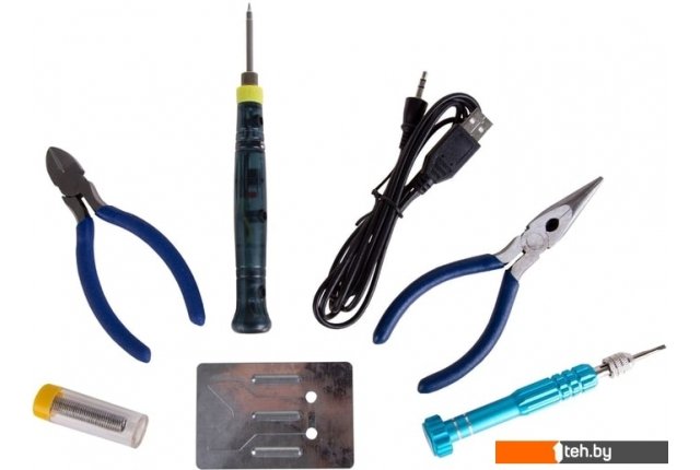 | Комплектация | USB-паяльник 8Вт, кусачки, тонкогубцы, подставка, припой, отвертка |