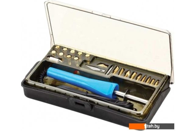 | Информация | Благодаря 19 различным насадкам его можно сделать как паяльником, так и выжигателем. С помощью этих насадок можно создавать красивые картины, выжигая на дереве различные узоры, выполнять выжигание на коже или резать пластмассу |