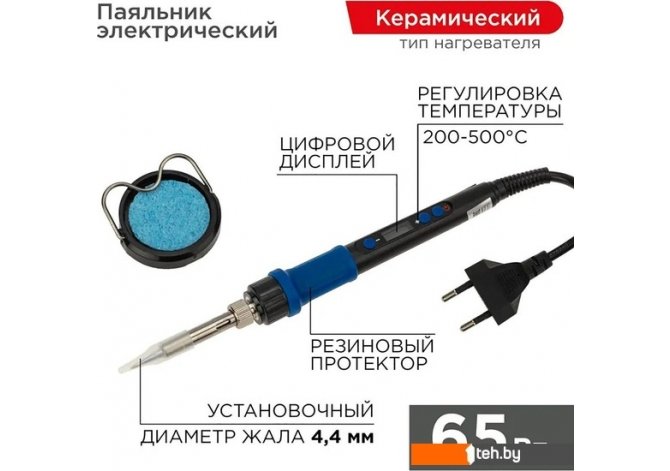 | Информация | Паяльник с керамическим нагревателем и цифровым регулятором температуры REXANT предназначен для ручного монтажа радиоэлементов. Используется как в домашних условиях, так и в профессиональных мастерских. Сочетает в себе современный дизайн и компактный размер. Паяльник оснащен керамическим нагревательным элементом и долговечным жалом. В корпус устройства встроен цифровой регулятор, позволяющий устанавливать температуру в диапазоне от 200 до 500 °C. Широкий диапазон рабочих температур позволяет применять такой паяльник для самых разных задач. Острое тонкое жало оптимально подходит для точных работ с электронными компонентами. В случае необходимости его можно легко и быстро заменить (сменное жало в комплект не входит). Удобная эргономичная рукоятка из термостойкого пластика с резиновой накладкой сделает работу с инструментом легкой и приятной. |