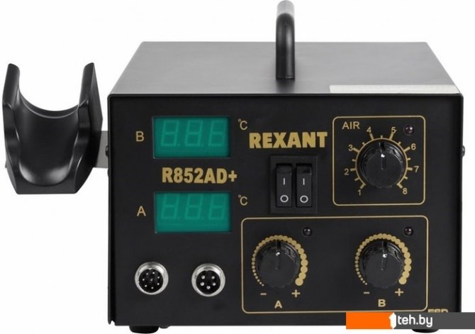 | Информация | Универсальная цифровая паяльная станция 2 в 1 с компрессорным феном и паяльником (R852AD+).Станция применяется для демонтажа или пайки различных видов компонентов, таких как SOIC, PLCC, QFP, BGA и т. д.Микрокомпьютер для цифрового отображения данных и контроля температуры с точностью до 1 °C, быстрый и равномерный разогрев, регулировка интенсивности обдува. Все эти преимущества делают бесконтактную пайку безопасной для таких чувствительных компонентов как SOIC, PLCC, QFP, BGA и т. д. |