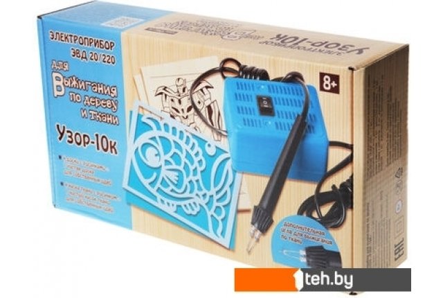 | Информация | Освойте один из занимательнейших видов декоративного искусства – выжигание по дереву и ткани с электроприбором «Узор 10К» от «Десятого королевства»! Состав: • электроприбор для выжигания по дереву (9,5 х 5,3 см, вес 0,66 кг) • дополнительная игла для выжигания по ткани • доски с рисунком – 4 шт. (15 х 21 см) • тренировочная доска без рисунка – 1 шт. (15 х 21 см) • фетр с рисунком – 4 шт. (А5) • тренировочный фетр без рисунка – 1 шт. (А5) • руководство по эксплуатации Техническая информация о приборе: • напряжение питания прибора – 220,50 Гц • потребляемая мощность – 20 Вт Особенность набора «Узор 10К» в том, что с его помощью можно освоить сразу 2 хобби – пирографию (выжигание по дереву) и гильоширование (выжигание по ткани). Обратите внимание! Работать с тканью рекомендуется на подставке из стекла или искусственного камня – в качестве подставки не допустимо использовать пластиковые поверхности. Кликните на оранжевую иконку инструкции справа или перейдите в раздел «Поддержка», чтобы ознакомиться с полным руководством к прибору. Подарите ребёнку возможность освоить мастерство выжигания, обрести новое хобби и разнообразить досуг: украшайте шкатулки, разделочные доски и другие элементы интерьера своими руками. Занятия по выжиганию стимулируют развитие мелкой моторики у детей, а также тренируют усидчивость и внимательность. |