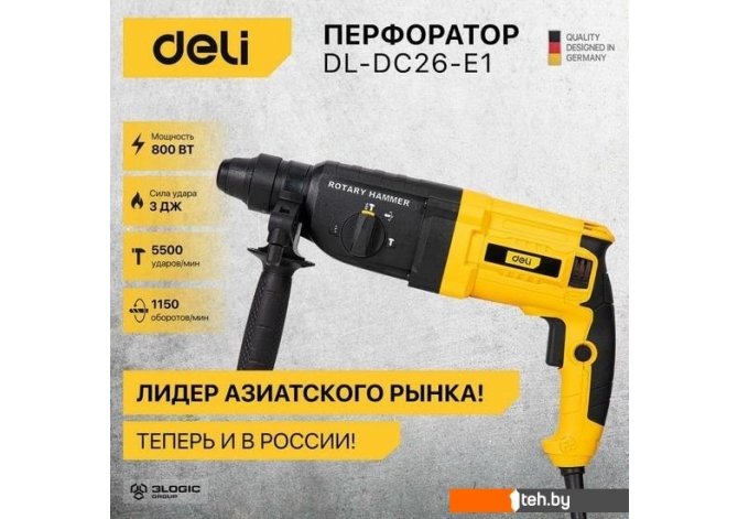 Фотографии, описание и технические характеристики модели перфоратора Deli DL-DC26-E1 103007 взяты из открытых источников, официального сайта производителя или представительства Deli в Республике Беларусь.