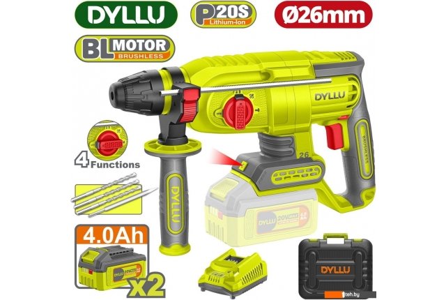 Фотографии, описание и технические характеристики модели перфоратора Dyllu DTLM1B262 (с 2-мя АКБ, кейс) взяты из открытых источников, официального сайта производителя или представительства Dyllu в Республике Беларусь.