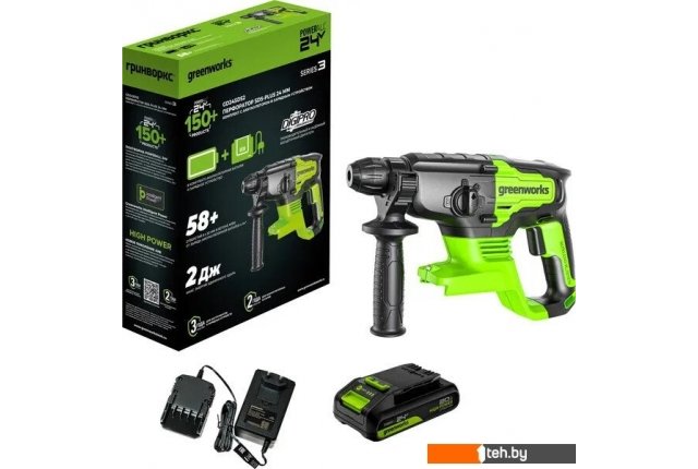 Фотографии, описание и технические характеристики модели перфоратора Greenworks GD24SDS2 3803007CUA (с 1-им АКБ) взяты из открытых источников, официального сайта производителя или представительства Greenworks в Республике Беларусь.