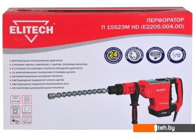 Фотографии, описание и технические характеристики модели перфоратора ELITECH П 1552ЭМ HD взяты из открытых источников, официального сайта производителя или представительства ELITECH в Республике Беларусь.