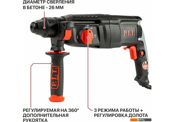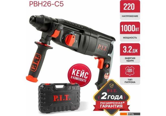 Фотографии, описание и технические характеристики модели перфоратора P.I.T. PBH26-C5 (кейс) взяты из открытых источников, официального сайта производителя или представительства P.I.T. в Республике Беларусь.