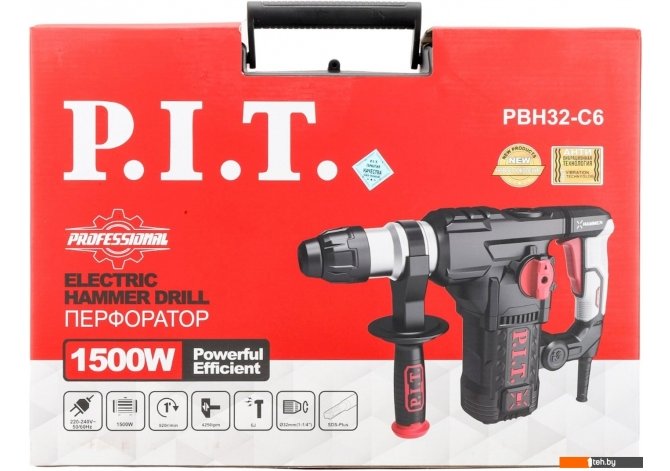 Фотографии, описание и технические характеристики модели перфоратора P.I.T. PBH32-C6 (кейс) взяты из открытых источников, официального сайта производителя или представительства P.I.T. в Республике Беларусь.