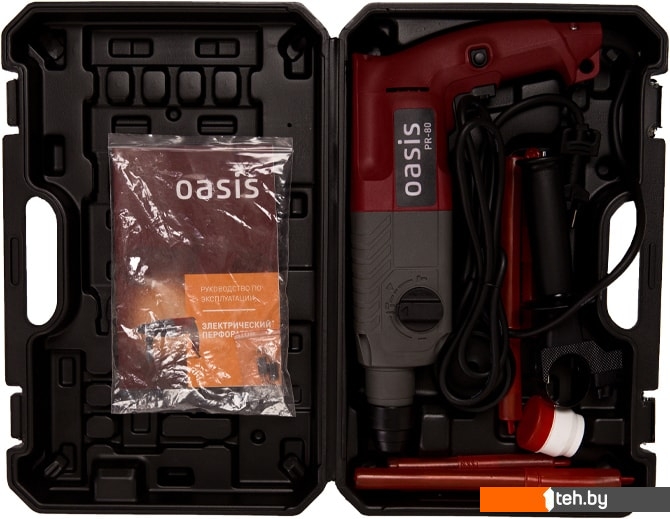 Фотографии, описание и технические характеристики модели перфоратора Oasis PR-80 взяты из открытых источников, официального сайта производителя или представительства Oasis в Республике Беларусь.