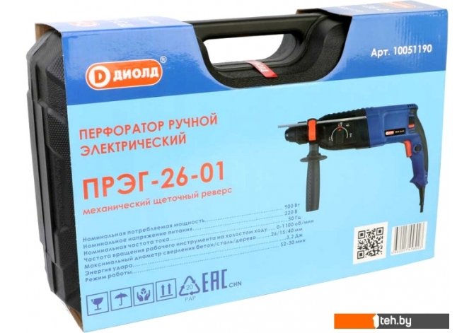 Если хотите купить перфоратор ДИОЛД ПРЭГ-26-01 то следует уточнить все параметры и габариты модели перед покупкой. Представленые характеристики на сайте 1teh.by могут отличаться от действительных или указанных производителем. Описание, фото товара и технические характеристики представлены для справки.