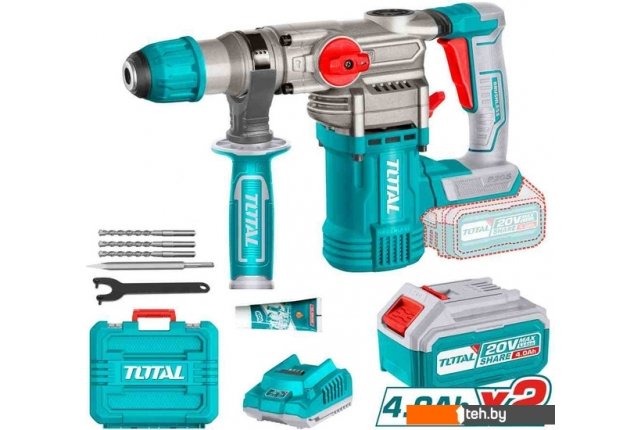 Фотографии, описание и технические характеристики модели перфоратора Total TRHLI202882 (с 2-мя АКБ, кейс, набор оснастки) взяты из открытых источников, официального сайта производителя или представительства Total в Республике Беларусь.