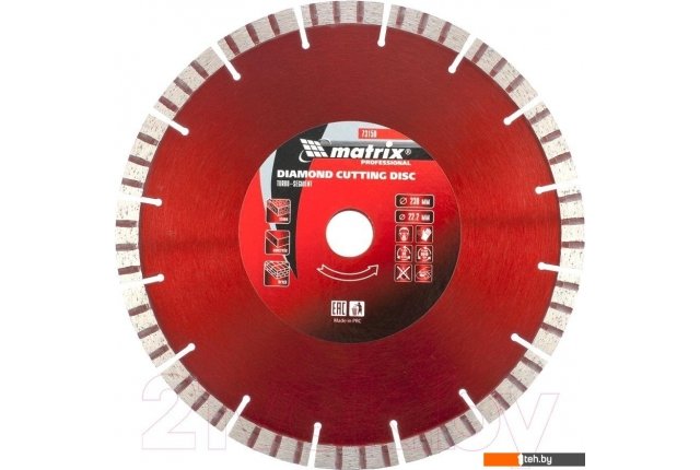 | Информация | - Диск идеально подходит для сухого резания бетона разных марок, кирпича и природного камня. - Основание из стали 65Г, созданное методом холодного прессования, обеспечивает прочность и долговечность. Режущий слой состоит из порошков различных металлов и высококачественного синтетического алмаза, что гарантирует отличные результаты. - Сегментная форма диска способствует эффективному резанию и быстрому выносу шлама из зоны резания, что делает процесс более продуктивным. - Не упустите возможность улучшить свои резательные работы! |