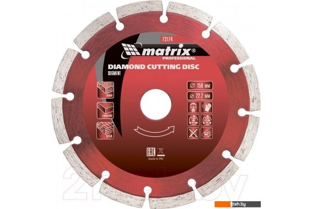 | Информация | - Продолжительный срок службы достигается благодаря высокой концентрации алмазного порошка, который идеально сочетается с оптимально подобранной связкой. - Наличие «прорезей» в сегментах диска способствует эффективному удалению продуктов резания, что делает процесс обработки более продуктивным. - Этот диск идеально подходит для сухой резки бетона, железобетона и мрамора. |