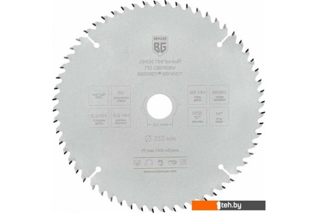 | Информация | ? Диск пильный по дереву и ДСП, чистый рез ? Сталь диска: 65Mn / 45-48 HRC ? Материал зубьев: твердый сплав ВК8Х / 89-90 HRC ? Тип зуба: ATB ? Угол скоса зуба: 12° ? Угол атаки зуба: 14° ? — чистый рез ? — для быстрого поперечного и продольного распила мягкой и твёрдой древесины, ДСП, МДФ, ламината ? — для ручных и стационарных циркулярных пил |