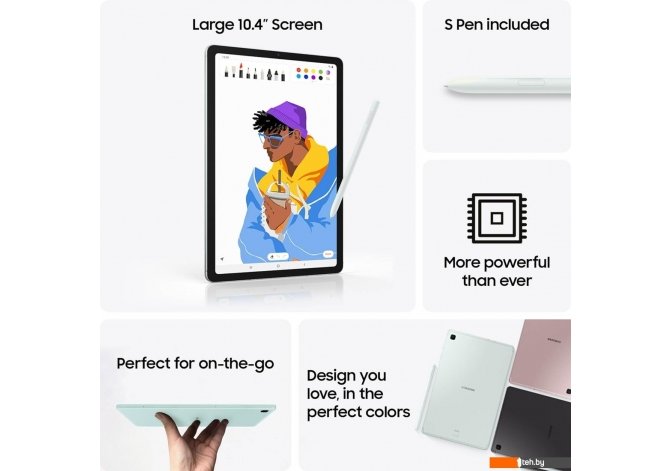 Фотографии, описание и технические характеристики модели планшета Samsung Galaxy Tab S6 Lite 2024 Wi-Fi SM-P620 4GB/128GB (мятный) взяты из открытых источников, официального сайта производителя или представительства Samsung в Республике Беларусь.