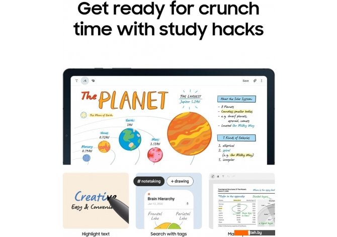 | Информация | ??Текст описания переведен при помощи искусственного интеллекта. - Galaxy Tab S6 Lite - это ваш невероятно портативный компаньон для заметок, который всегда готов к действию. Он поставляется с большим 10,4-дюймовым дисплеем в тонком и легком корпусе, One UI 6.1 на Android и S Pen в комплекте, готовый к использованию. Независимо от того, рисуете ли вы, учитесь или играете, этот планшет создан для того, чтобы быть в моменте. - Меньше рамки означает больше места для более крупного 10,4-дюймового дисплея на удобном компактном планшете. Наслаждайтесь импровизированным частным просмотром в парке или марафоном просмотра в постели с двумя динамиками в альбомной ориентации, которые обеспечивают богатый объемный звук. - Поставьте экран на один из двух углов вашего чехла для удобного просмотра. Независимо от того, отдыхаете ли вы на диване или сидите в кафе, просто отрегулируйте экран, чтобы с удобством смотреть все ваши любимые контенты. - Следить за лекциями легко с помощью S Pen. При создании заметок вы можете сначала писать, а затем менять цвета. Быстро сортируйте заметки, сохраняя их с помощью поисковых тегов. Даже пишите непосредственно на PDF-файлах, чтобы убрать беспорядок в учебе. Когда наступит критический момент, вы будете организованы и готовы. - S Pen - это набор письменных инструментов в одном. Его естественный хват, низкая задержка и впечатляющая чувствительность к давлению сделают его вашим основным инструментом для всего, начиная от рисования до редактирования документов. И S Pen не потеряется благодаря магнитному держателю планшета. - Наслаждайтесь временем дома с Galaxy Tab S6 Lite, рисуя, раскрашивая и делитесь своими рисунками в приложении PENUP. PENUP приближает вас к другим, позволяя вам вдохновлять и быть вдохновленным, чтобы вы могли весело провести время вместе, даже находясь вдали друг от друга. - Полноценная продуктивность, как на ПК, в тонком планшете с Samsung DeX. Просто нажмите кнопку DeX на панели быстрых настроек для функций, позволяющих использовать планшет так же, как ПК. Открывайте сразу несколько окон, перетаскивайте фотографии в электронное письмо и щелкайте правой кнопкой мыши для дополнительных функций. - Samsung Knox обеспечивает защиту на уровне обороны. Ваши личные данные защищены от вредоносных программ и злонамеренных атак благодаря аппаратно обеспеченной и многоуровневой платформе безопасности Knox. - Беспрепятственная работа на разных устройствах. Вы можете скопировать текст или изображение с телефона и вставить их на планшете, и наоборот. Или написать заметку в Samsung Notes или просматривать в Samsung Internet на планшете и открыть эти приложения на телефоне, чтобы продолжить с того места, где вы остановились. - Galaxy Tab S6 Lite автоматически синхронизируется с вашим смартфоном Galaxy, чтобы вы никогда не пропускали звонок. Также вы можете отвечать на срочные текстовые сообщения, чтобы всегда быть в курсе событий. Просто коснитесь значка на панели быстрых настроек для беспрепятственного подключения. - Быстрая и простая передача ваших фотографий, видео и документов с помощью Quick Share. Всего несколько касаний, и вы мгновенно можете отправлять файлы с вашего телефона, планшета или книги Galaxy на другие близлежащие устройства Android, даже на несколько устройств. Хотите отправить файл на устройства, не работающие на Android? Его легко можно поделиться через QR-код или 