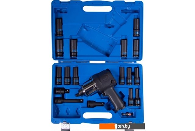 | Комплектация | - Гайковёрт пневматический ударный (арт. 33411-050); - Головки ударные глубокие 8, 10, 12, 13, 14, 15, 16, 17, 18, 19, 21, 22, 24, 27 мм (серия 4435M); - Удлинитель ударный 125 мм (4260-05P); - Удлинитель ударный 75 мм (4260-03P); - Кардан ударный шаровый 60 мм (4799P); - Штуцер БРС (SY-211M); - Инструкция по эксплуатации; -Кейс из пластика PE-HD. |