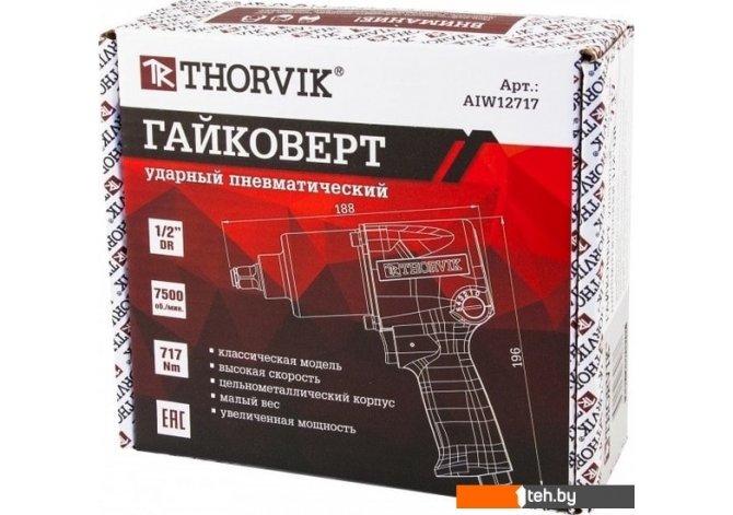 Фотографии, описание и технические характеристики модели гайковерта Thorvik AIW12717 взяты из открытых источников, официального сайта производителя или представительства Thorvik в Республике Беларусь.