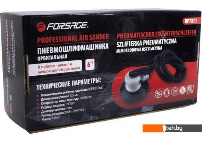 Если хотите купить пневматическая шлифовальная машинка FORSAGE F-RP7311 (с принудительной системой пылеотвода) то следует уточнить все параметры и габариты модели перед покупкой. Представленые характеристики на сайте 1teh.by могут отличаться от действительных или указанных производителем. Описание, фото товара и технические характеристики представлены для справки.