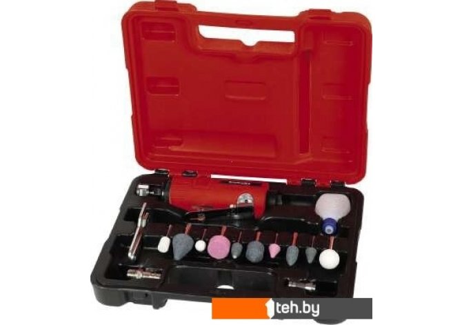 | Комплект поставки | - Пневматический инструмент для шлифования, полирования, гравировки и удаления загрязнений;- 10 шлифовальных штифтов для широкого спектра применений;- Масленка;- 1 разъем для подключения шланга; - 2 ключа;- Фирменный пластиковый кейс. |