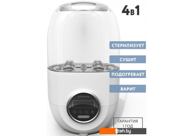 | Информация | Многофункциональный стерилизатор-подогреватель-сушка для бутылочек и детских принадлежностей 4-в-1 KUNDER может не только стерилизовать детскую посуду, подогревать питание, но также позволяет готовить на пару и размораживать. Универсальная модель совместима со всеми детскими бутылочками. Предустановленные программы стерилизации 20 мин., сушки – 40 мин., температурные режимы подогрева питания предусмотрены от 30 до 90 С. После нагрева до заданной температуры устройство поддерживает постоянную температуру в течение 24 часов. Паровой стерилизатор-подогреватель KNDR-21 обеспечивает равномерный прогрев. Диапазон времени приготовления на пару 1 - 20 мин., автоматически установленная температура 100 С. После завершения режима устройство отключается автоматически. При недостаточном количестве воды в емкости устройство отключится автоматически. Стерилизатор-подогреватель оснащен сенсорной светодиодной панелью, которая значительно упрощает проверку времени и температуры. А таймер обратного отсчета позволяет отслеживать остаточное время в режимах. электронный стерилизатор; стерилизатор пароварка; электрический стерилизатор 4 в 1. Комплектация: подставка; подогреватель бутылочек; мерный стакан; стерилизатор детский/ Универсальная модель совместима со всеми детскими бутылочками. |