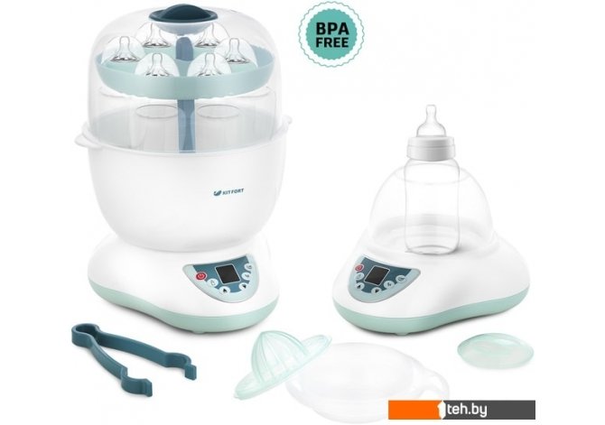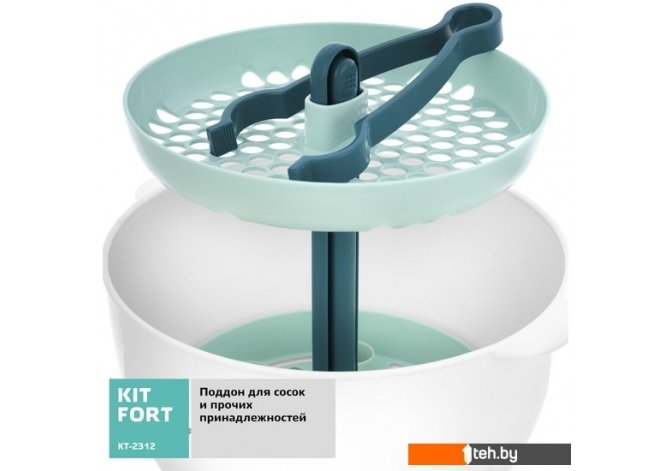 | Информация | Стерилизатор Kitfort KT-2312 совмещает в себе несколько функций. Он позволяет простерилизовать бутылочки для детского питания и другие подходящие по размеру аксессуары. Бутылочки помещаются горлышками вниз на посадочные места в чаше, а соски и другие аксессуары раскладываются на поддоне, устанавливаемом сверху. Можно простерилизовать 6 бутылочек за раз. По окончании стерилизации прибор автоматически выключается. |