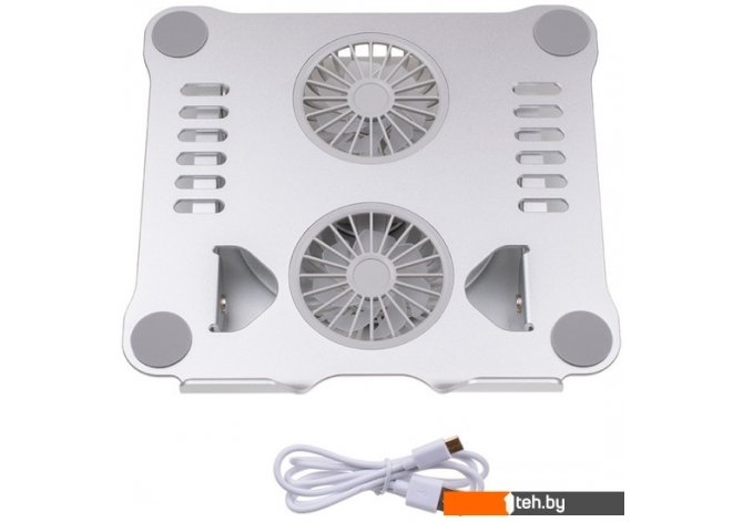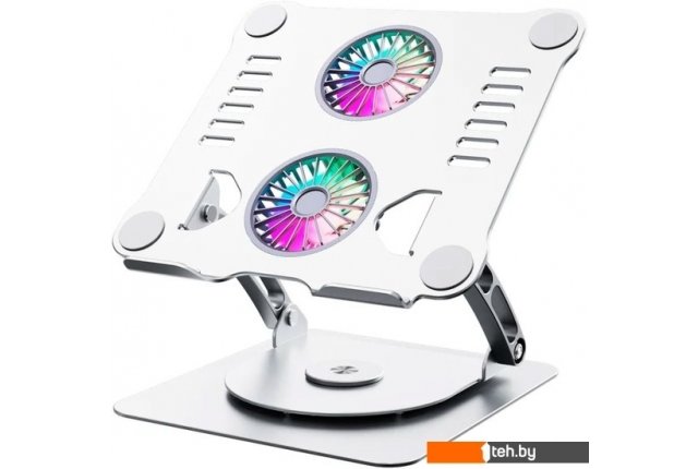 | Информация | Охлаждающая подставка-трансформер для ноутбука, планшета или смартфона со встроенными вентилятором, максимально усиленная конструкция из алюминиевого сплава. Все узлы регулировки металлические, утяжеленное основание с противоскользящими ножками и поворотной платформой на 360 гр., прочная конструкция позволяет выдержать вес до 20 кг. На основании подставки закреплена поворотная платформа со стойками, конструкция свободно вращается на 360 гр. без ограничения хода! Нижние упоры и противоскользящие защитные наклейки дают возможность надежно разместить ваше устройство на платформе подставки. Специальные прорези для свободного доступа воздушного потока и дополнительного охлаждения. Высота подставки и угол наклона рабочей поверхности регулируются и всегда можно подобрать оптимальное положение устройства в зависимости от ваших потребностей, правильная осанка и комфорт при работе предотвратят появление усталости и дискомфорта в спине и шее Вентиляторы с цветной led-подсветкой, низкий уровень шума, лопасти из ударопрочного прозрачного пластика, сверху и снизу имеется защитный кожух, сильный поток воздуха эффективно снижает температуру вашего устройства Кнопка включения и отключения вентиляторов, разъем USB Type-C для подключения к внешнему USB-разъему или блоку питания |