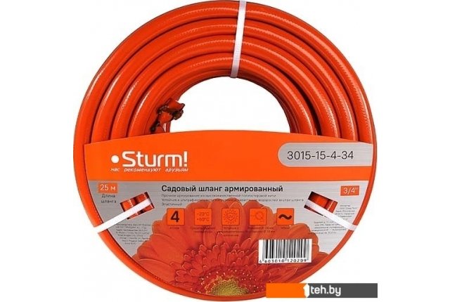 Фотографии, описание и технические характеристики модели Sturm 3015-15-4-34 (оранжевый, 3/4", 25 м) взяты из открытых источников, официального сайта производителя или представительства Sturm в Республике Беларусь.