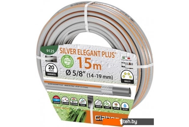 Фотографии, описание и технические характеристики модели Claber Silver Elegant Plus 9125 (5/8", 15 м) взяты из открытых источников, официального сайта производителя или представительства Claber в Республике Беларусь.