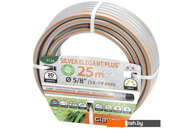 Фотографии, описание и технические характеристики модели Claber Silver Elegant Plus 9126 (5/8", 25 м) взяты из открытых источников, официального сайта производителя или представительства Claber в Республике Беларусь.