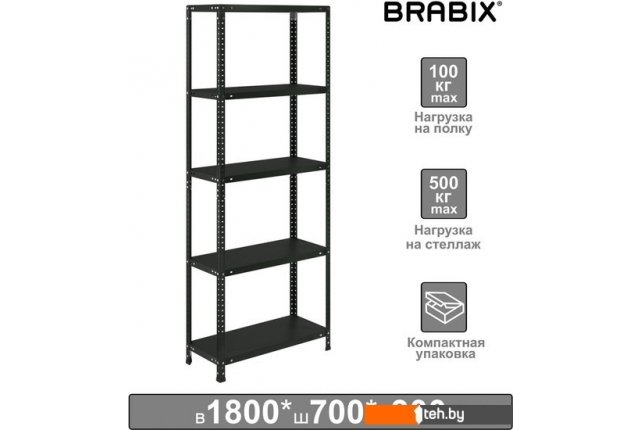 | Информация | Металлический стеллаж BRABIX собирается с помощью болтов, за счет чего достигается устойчивая конструкция. Простой и экономичный способ организовать хранение вещей и различных грузов. Прекрасно дополняет интерьер в стиле "лофт" благодаря цвету "графит". Возможны два варианта сборки стеллажа. Высокий единый стеллаж (180 см) благодаря сборке стойки, или 2 невысоких (90 см) раздельных стеллажа. Стойка имеет разборную конструкцию, благодаря чему стеллаж поставляется в компактной упаковке. Максимальная нагрузка на полку при этом достигает 100 кг, на стеллаж - до 500 кг. Стойки с усиленным угловым профилем сложного сечения 30х30 мм и толщиной металла 1,2 мм. Полки имеют толщину основания 0,5 мм, усилены центральным ребром жесткости. Высота бокового и торцевого ребра полки - 33 мм, толщина - 1 мм. Для повышения жесткости всей конструкции верхняя и нижняя полка усилена дополнительными Г-образными уголками. Шаг установки полок - 25 мм. Опоры пластиковые, нерегулируемые. Вся необходимая фурнитура для сборки в комплекте. |
