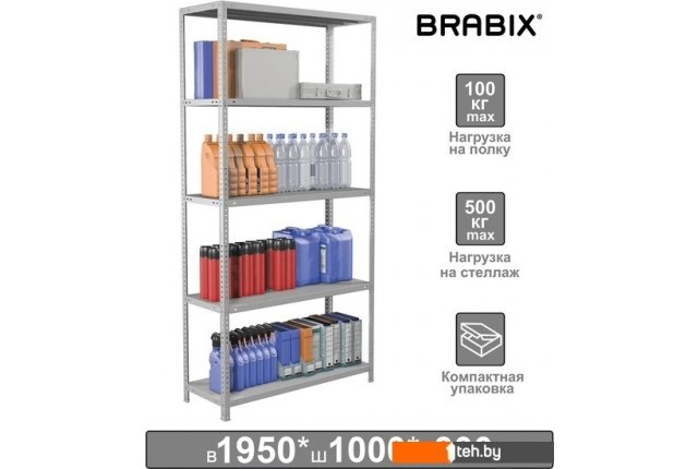 | Информация | Металлический стеллаж BRABIX собирается с помощью болтов, за счет чего достигается устойчивая конструкция. Простой и экономичный способ организовать хранение вещей. Предназначены для хранения документов и различных грузов в офисе, на складе, в архиве. Стойка имеет разборную конструкцию, благодаря чему стеллаж поставляется в компактной упаковке. Максимальная нагрузка на полку при этом достигает 100 кг, на стеллаж - до 500 кг. Стойки с усиленным угловым профилем сложного сечения 30х30 мм и толщиной металла 1,2 мм. Полки имеют толщину основания 0,5 мм, усилены центральным ребром жесткости. Высота бокового и торцевого ребра полки - 33 мм, толщина - 1 мм. Для повышения жесткости всей конструкции верхняя и нижняя полка усилена дополнительными Г-образными уголками. Шаг установки полок - 25 мм. Опоры пластиковые, не регулируемые. Вся необходимая фурнитура для сборки в комплекте. |