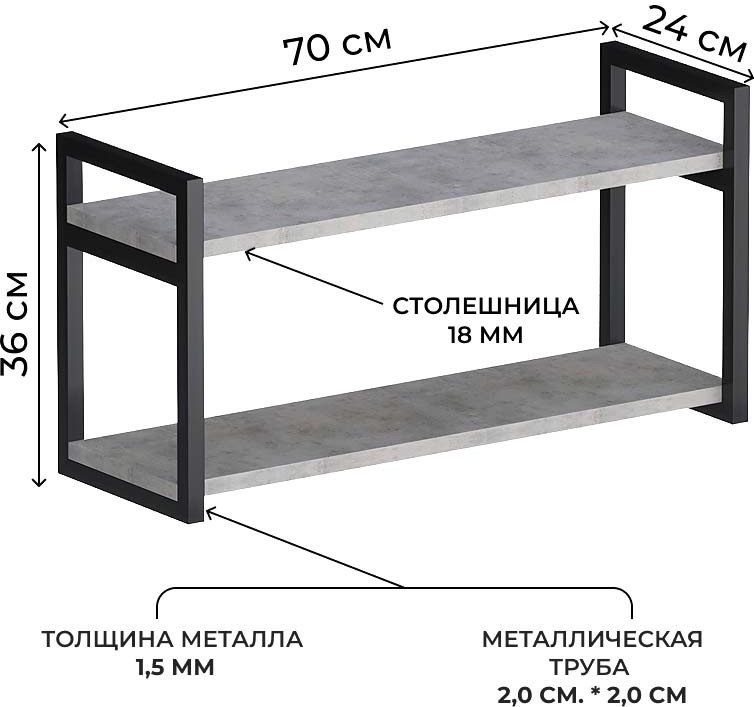 Информация | - Подвесная полка из металлической трубы 20?20 мм с толщиной металла 1.5 мм. - Идеальное решение для цветов и растений, добавляет нотки стиля лофт. - Компактная и вместительная, подходит для узких пространств балкона, лоджии, веранды или террасы. - Изготовлена из ламинированного ДСП толщиной 18 мм. - Подходит для размещения цветов, книг, икон, статуэток, фоторамок, игрушек, косметики, наград и достижений. - Простая и удобная сборка, все необходимое в комплекте. - Идеально подходит для любого интерьера, от скандинавского стиля до минимализма. - Мебель в стиле лофт всегда в тренде, добавляет стиль и современность. - Отличный подарок на новоселье, для друзей, родителей или для себя. - Украшает пространство и создает дополнительное место для хранения. |