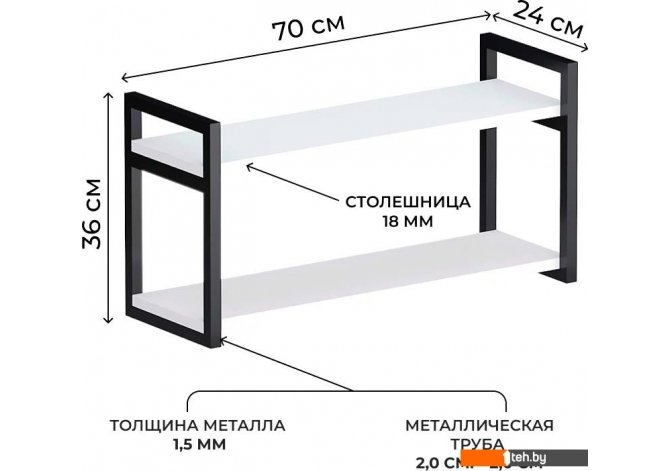 | Информация | - Полка Макс Стайл Пн-1220-W960 изготовлена из металлической трубы 20?20 мм с толщиной металла 1.5 мм и предназначена для тех, кто ищет стильное и универсальное решение для размещения цветов и растений. - Этот предмет интерьерной мебели поможет организовать пространство в доме, квартире или офисе, добавив нотки стиля лофт. - Двухуровневая полка компактна и вместительна одновременно, легко впишется в узкие пространства балкона, лоджии, веранды, террасы или гардеробную. - Полки из ламинированного ДСП толщиной 18 мм подходят для размещения цветов, книг, икон, статуэток, фоторамок, игрушек, косметики, наград и достижений. - Двухъярусная полка в стиле лофт идеально подойдет в любой интерьер, будь то скандинавский стиль или минимализм. - Все необходимое для сборки прилагается в комплекте, что делает ее сборку простой и удобной. - Мебель в стиле лофт всегда в тренде и добавляет в интерьер стиль и современность. - Эта металлическая полка станет отличным подарком на новоселье, подруге, родителям или даже себе. |
