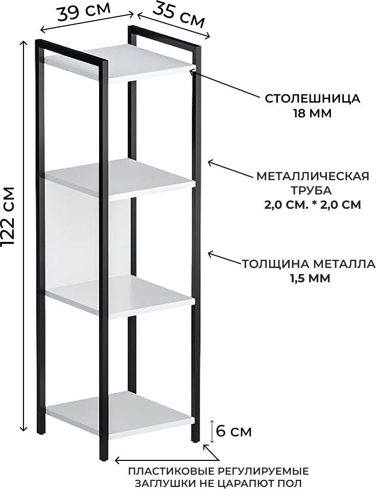Информация | - Стеллаж Макс Стайл СтМ-1220-W960 - идеальное дополнение для любого интерьера. Полка выполнена из трубы 20?20 мм с толщиной металла 1.5 мм, что обеспечивает прочность и долговечность. Вес 12 кг позволяет выдерживать значительные нагрузки. Отлично подойдет для цветов, растений, книг, документов и папок. Металлическая полка изготовлена из ламинированного ДСП 18 мм. В современном стиле лофт, отлично смотрится в любом интерьере. Может служить местом для статуэток и фоторамок в спальне, подставкой для полотенец и косметики в ванной комнате, а также в салонах красоты. В комплект входят пластиковые регулируемые ножки, защищающие пол от царапин. Все необходимое для сборки идет в комплекте, что позволяет сэкономить время и силы. - |